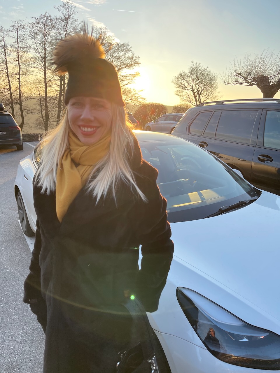 Was vor dem Autoradio auf den ersten Blick so aussieht wie ein Stöckel von Yuliya’s braunen Schuhen, ist bei näherer Betrachtung der Daumen der rechten Hand der Pilotin, die gerade einen neuen Sender eingestellt hat.