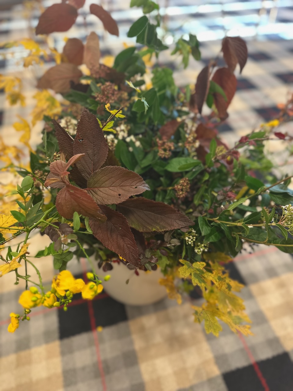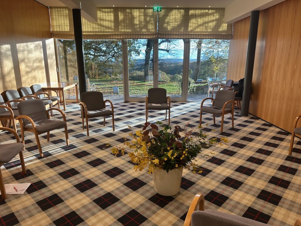Ein liebevolles und so gar nicht selbstverständliches Detail am Rande: Erst bei der Anreise habe ich mir gedacht, dass eine „schön gestaltete Mitte“ im Sesselkreis gut zur Intention und zum Thema des Workshops passen würde. Ich habe den jungen Mann, der mir den Seminarraum gezeigt hat, gebeten für den nächsten Tag ein großes Bouquet aus Blumen, Blättern und Zweigen aus dem Wald zu besorgen. Er meint nur verschmitzt lächelnd: „Ja gerne!“ Vermutlich hat er schon gehofft, dass die Seniorchefin das mit viel Liebe, Geschmack und Freude arrangieren wird.