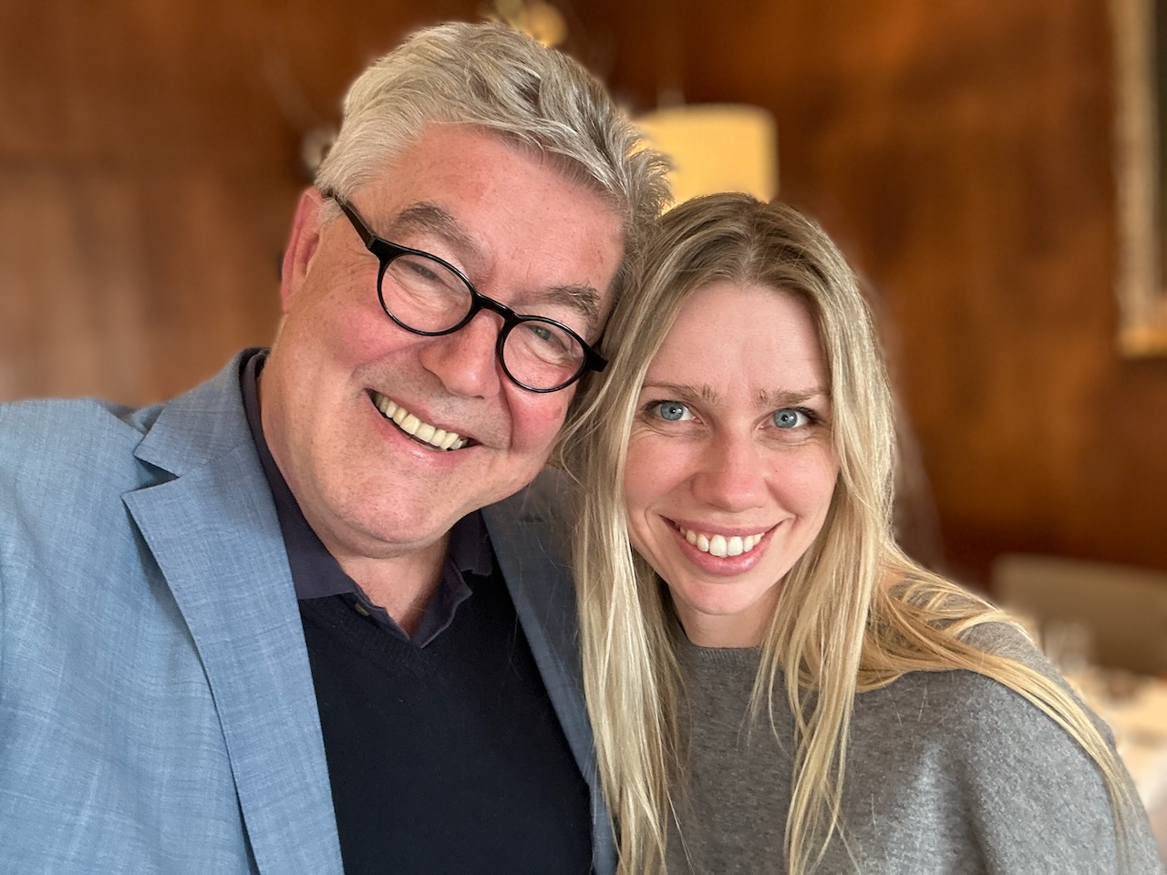 Harald und Yuliya Preyer vor der Albertina Klosterneuburg im warmen späten Nachmittagslicht des Herbstes.